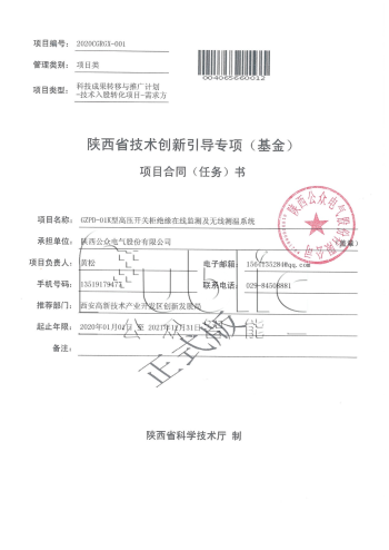 核心產(chǎn)品“開關(guān)柜局部放電在線監(jiān)測(cè)系統(tǒng)”獲得陜西省科學(xué)計(jì)劃項(xiàng)目立項(xiàng)支持。